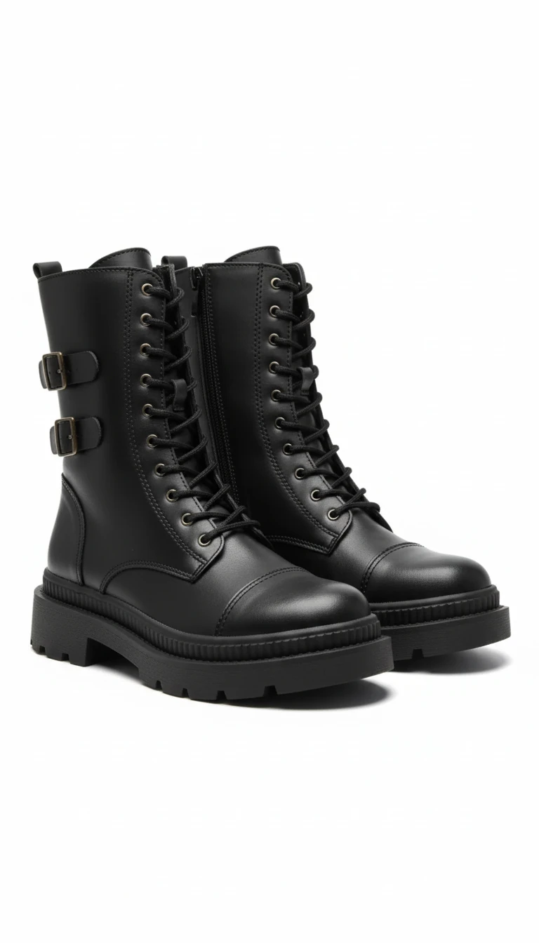 بوت زنانه مدل «لِوِرا» ترکیبی از استحکام، طراحی نظامی و استایل مدرن شهری است. بدنهی بوت از چرم مشکی مات با دو سگک فلزی در قسمت ساق طراحی شده تا در عین کاربردی بودن، جلوهای جسور و خاص داشته باشد. فرم بنددار جلو، ضمن حفظ ظاهر کلاسیک، امکان تنظیم دقیق روی پا را فراهم میکند و آستر داخلی نرم، حس راحتی مداوم را تضمین میکند.