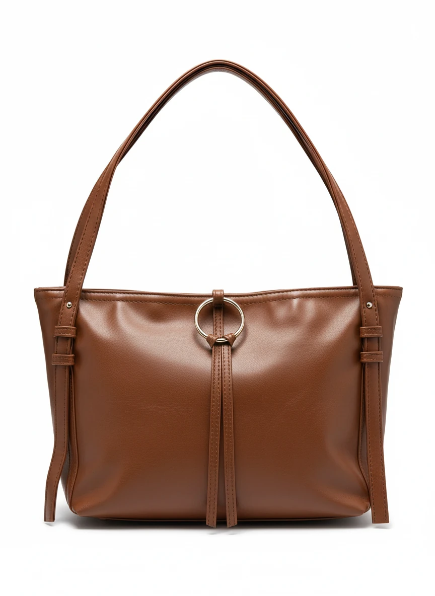 کیف توت زنانه چرمی با حلقه فلزی مرکزی