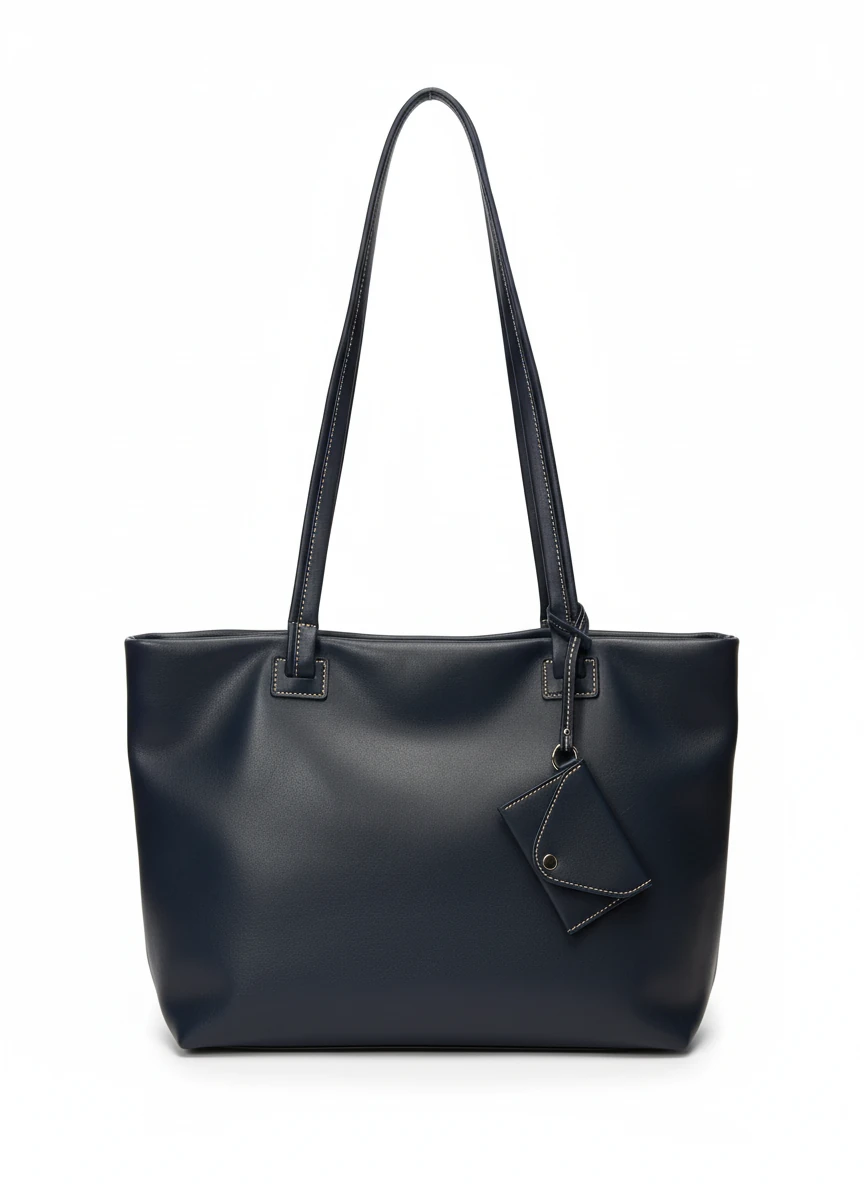 بندهای دوختهشده با اتصال تقویتشده، راحتی حمل را بالا میبرد و آویز کیف کوچک جلوهای ظریف و کاربردی به طراحی اضافه میکند. فضای داخلی این مدل برای کیف پول، گوشی، آیتمهای روزمره و حتی وسایل اداری سبک کاملاً مناسب است.