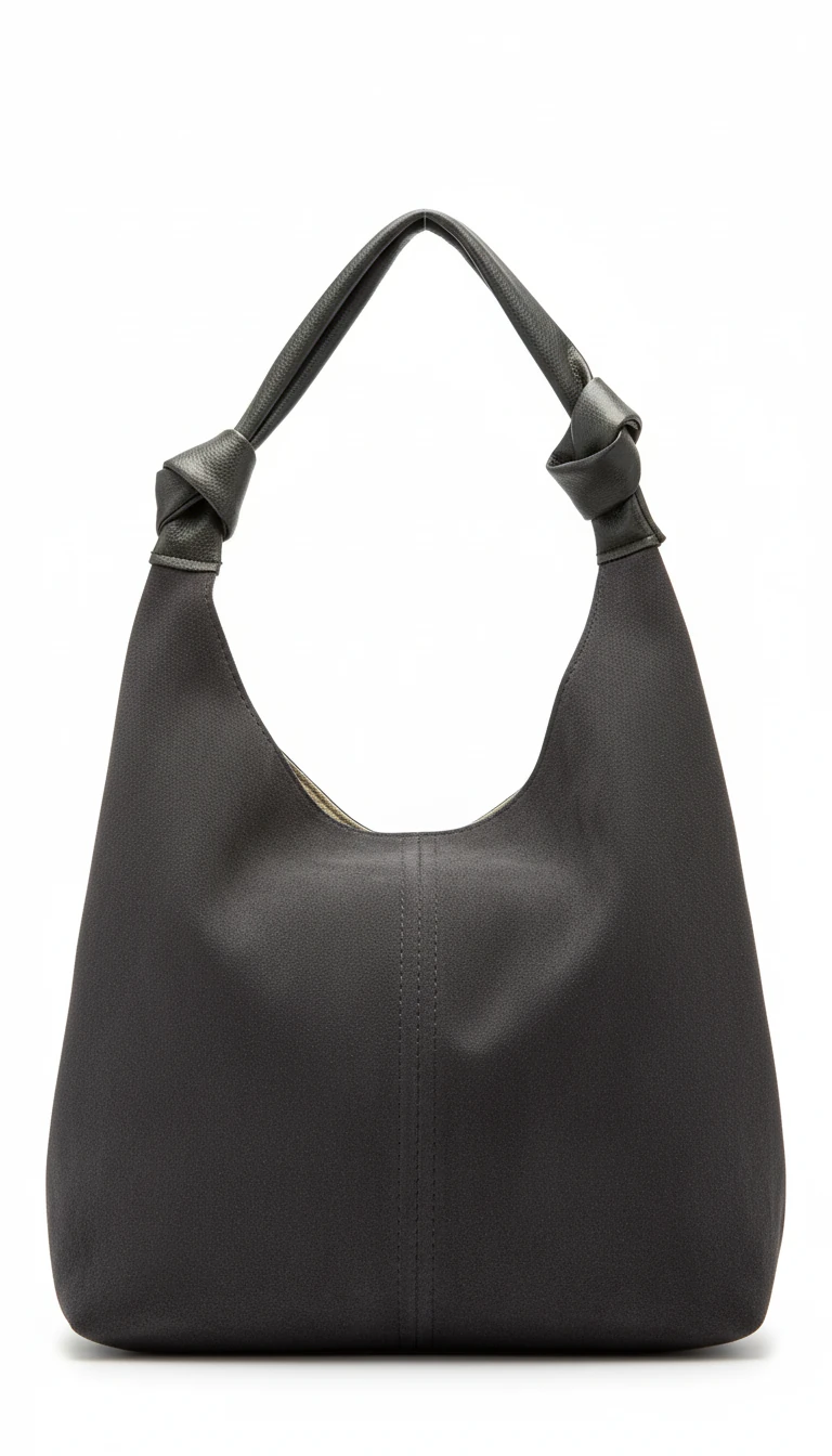 از سوییت مصنوعی نرم با بافت مخملی ساخته شده که در عین سبکی، ظاهر بسیار شیک و خوشفرمی دارد. فرم منعطف و دستهی چرمی گرهدار آن باعث میشود روی شانه راحت بنشیند و برای استفاده روزمره یا استایل نیمهرسمی مناسب باشد.