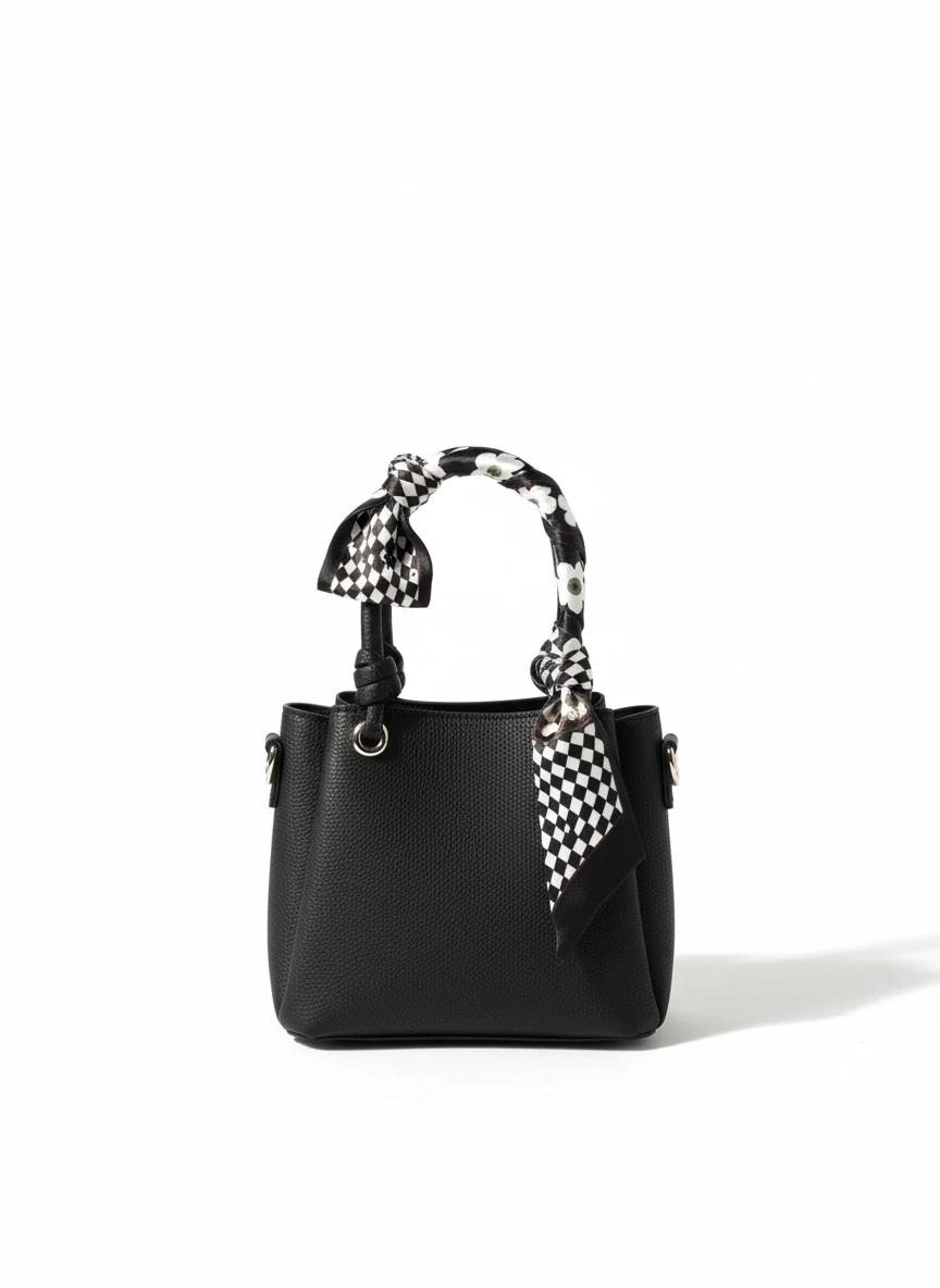 ویژگی امضایی دستههای چرمی گرهدار، همراه با روسری تزئینی طرحدار، جلوهای خاص و متمایز به کیف داده که آن را برای استایلهای شیک روزمره و مهمانیهای نیمهرسمی ایدهآل میکند.