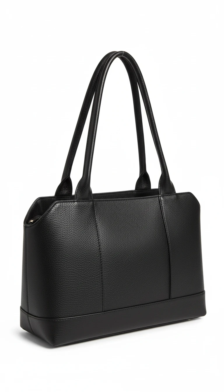 دو دسته بلند و خوشدوخت، حمل کیف را روی شانه بسیار راحت میکند و تناسب خطوط عمودی روی بدنه، ظاهر کیف را مرتب، حرفهای و مینیمال نشان میدهد. فرم ایستاده کیف باعث میشود داخل آن همیشه مرتب بماند و برای قرار دادن لوازم ضروری مثل کیف پول، عطر کوچک، موبایل و دفترچه یادداشت ایدهآل باشد.