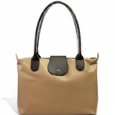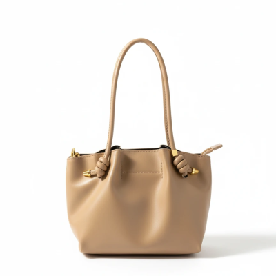 - دستهها: چرمی متوسط با گره فلزی طلایی در پایه