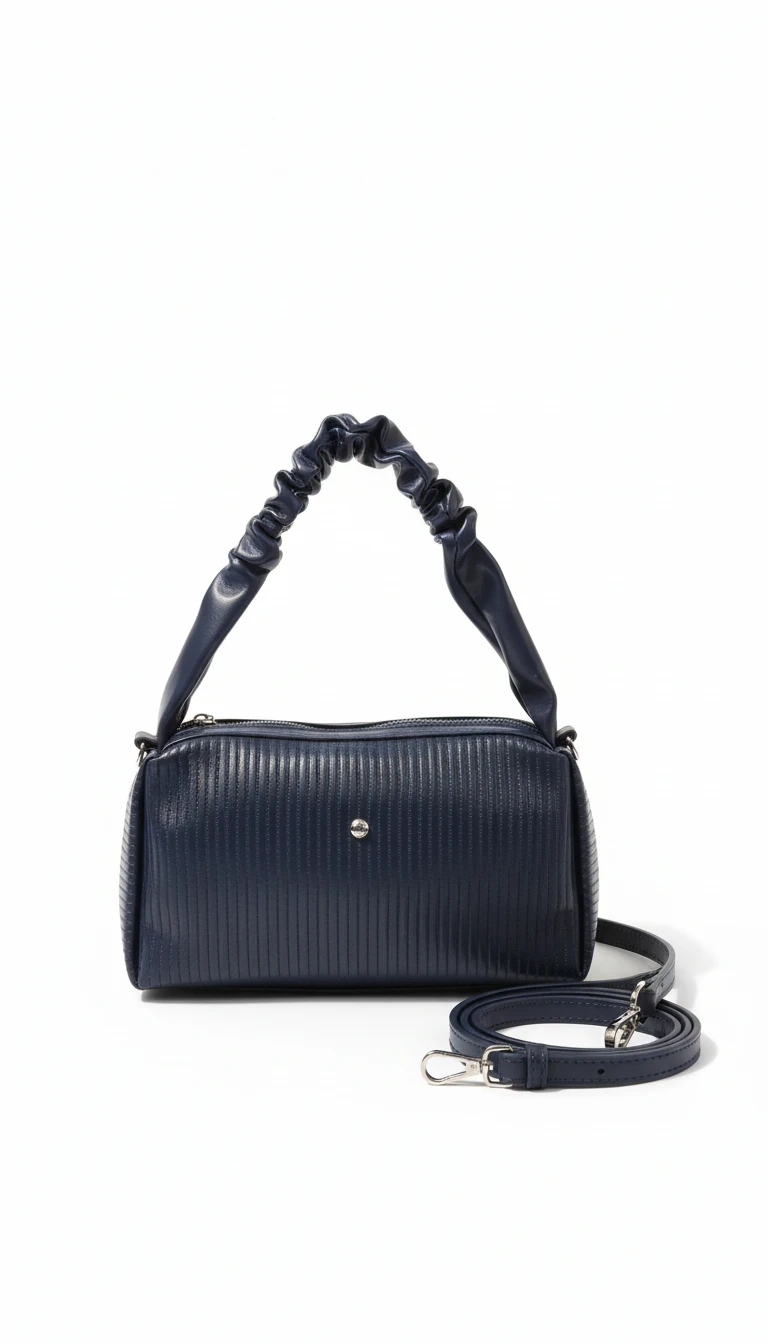 بدنه از چرم مصنوعی فشرده و براق با طرح شیاردار عمودی ساخته شده تا جلوهای خاص و متفاوت ایجاد کند.